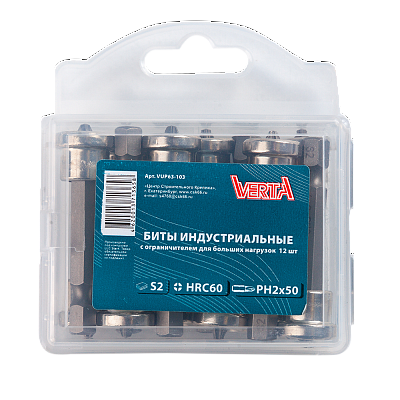 Биты Ph2х 50мм с вращающимся ограничителем для больших нагрузок (10шт) ULTRAPROFI VERTA