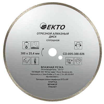 Диск алмазный 180х2,4х25,4мм по керамике, мрамору и граниту влажный рез ЕКТО