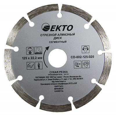 Диск алмазный 125х2,0х22,2мм сегментный сухой рез ЕКТО
