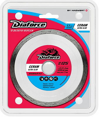 Диск алмазный 125х1,1х22,23мм ультратонкий влажный рез Ceram Ultra Slim DIAFORCE