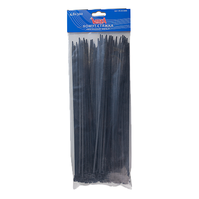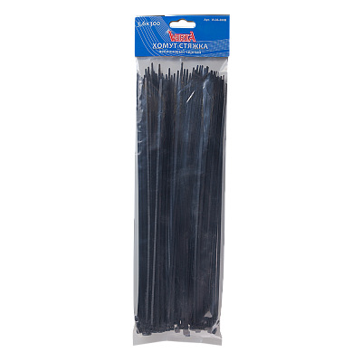 Хомут-стяжка 4,8х300мм нейлоновый черный VERTА