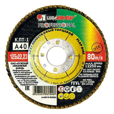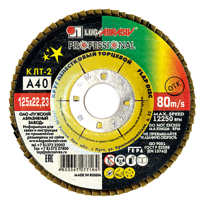Круг лепестковый 125х22мм A/Р40 №40 КЛТ_1 прямой ЛУГА