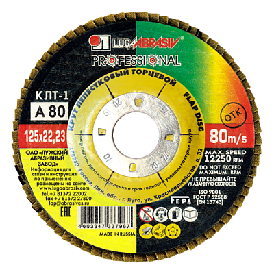 Круг лепестковый 125х22мм A/Р80 №20 КЛТ_1 прямой ЛУГА