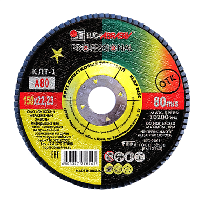 Круг лепестковый 150х22мм A/Р80 №20 КЛТ_1 прямой ЛУГА