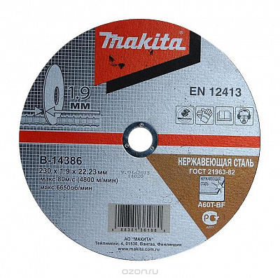 Круг отрезной 230х2,0х22,23мм по металлу и нержавеющей стали MAKITA