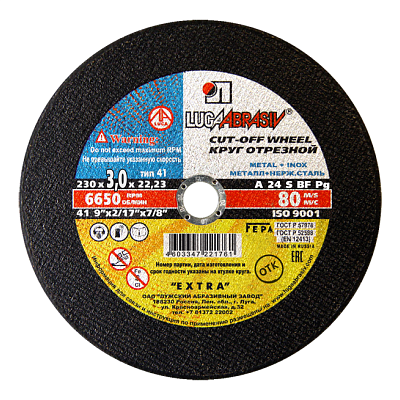 Круг отрезной 230х2,5х22мм А30 по металлу Extra ЛУГА