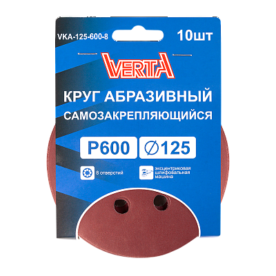 Круг абразивный самозакрепляющийся 125мм Р600 8 отверстий (10шт) VERTA