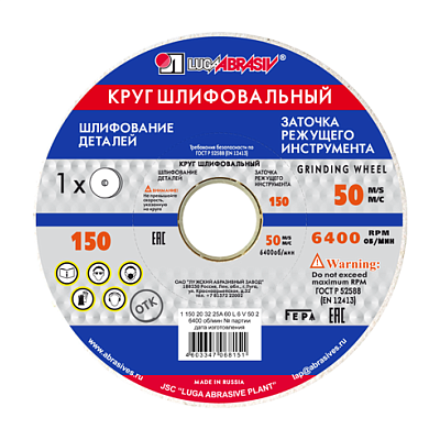 Круг шлифовальный 1 150х20х32мм 25А (белый) F60 К,L (среднемягкий) ЛУГА