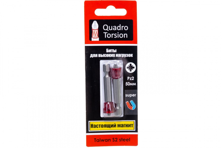 Биты PZ2х 50мм с магнитной насадкой (2шт) Quadro Torsion