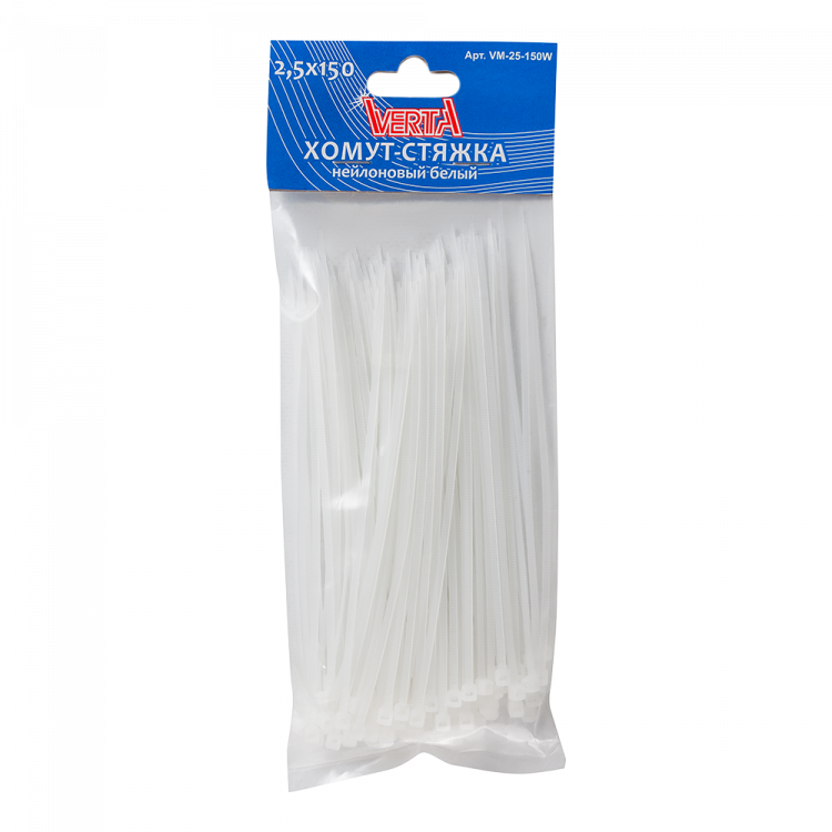 Хомут-стяжка 2,5х150мм нейлоновый белый VERTA