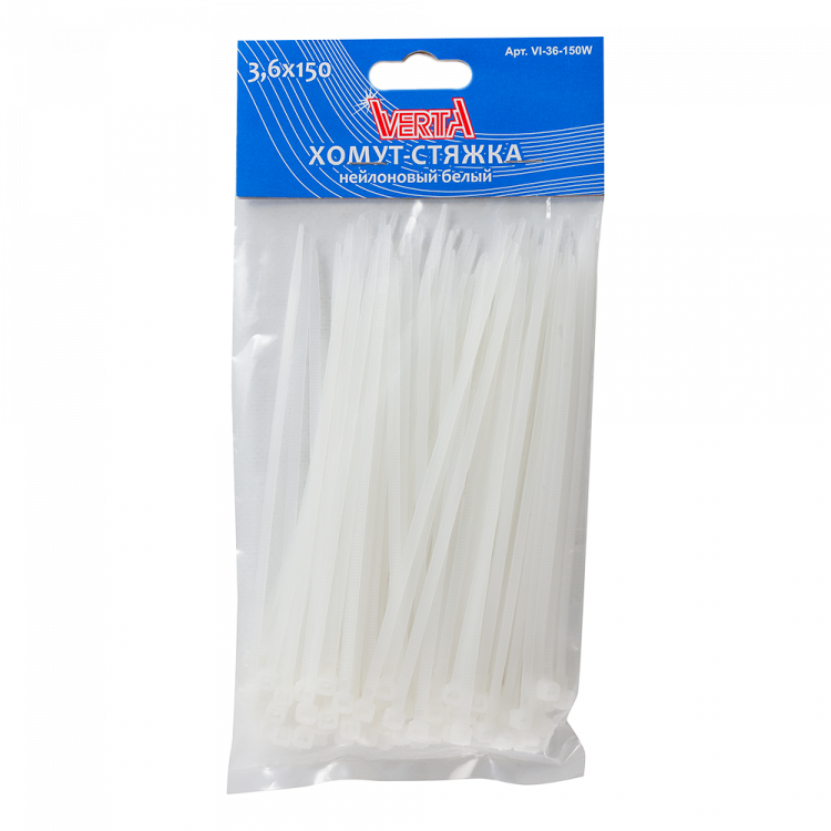 Хомут-стяжка 3,6х150мм нейлоновый белый VERTA