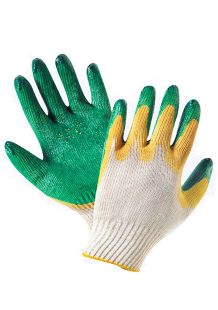 Перчатки хлопчатобумажные с двухслойным латексным покрытием желто-зеленые 13 класс