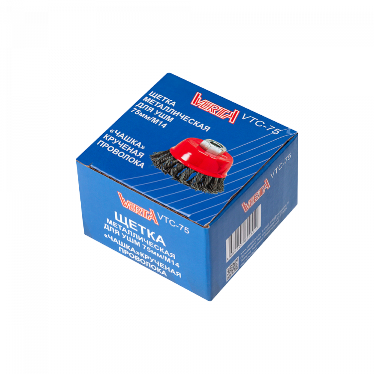 Щетка металлическая для УШМ 75мм/М14 чашка крученая проволока VERTA
