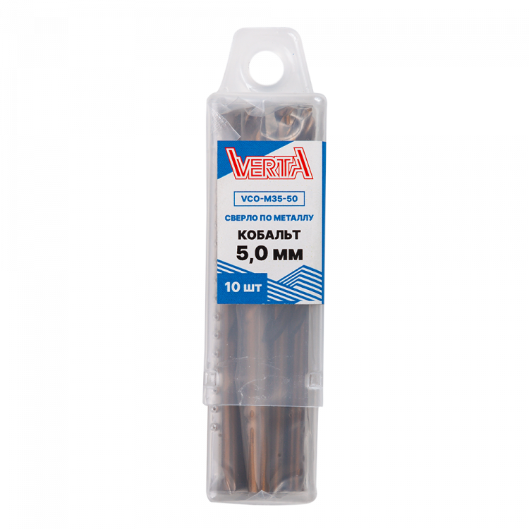 Сверло по металлу кобальт с цилиндрическим хвостовиком 5,0мм (10шт) VERTA