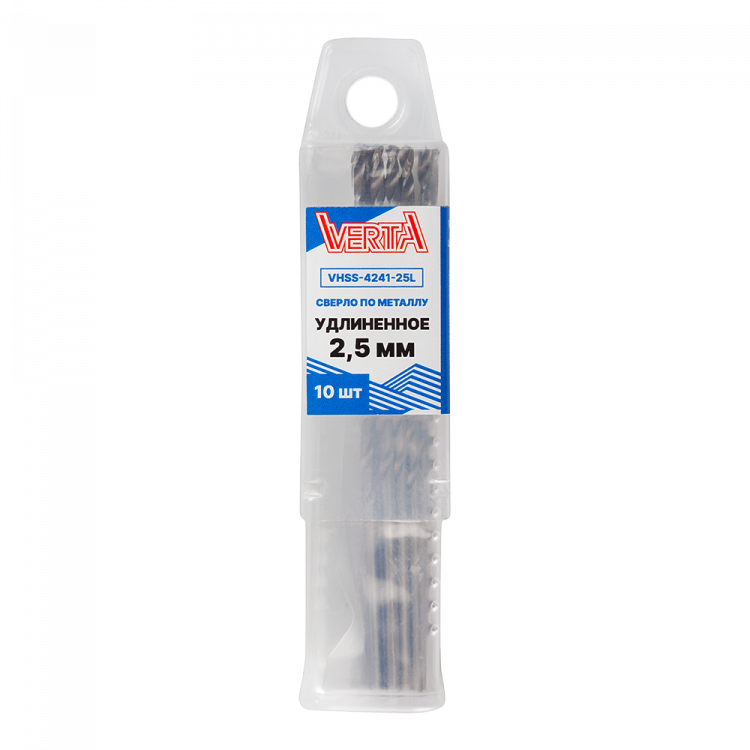 Сверло по металлу с цилиндрическим хвостовиком 2,5мм удлиненное (10шт) VERTA