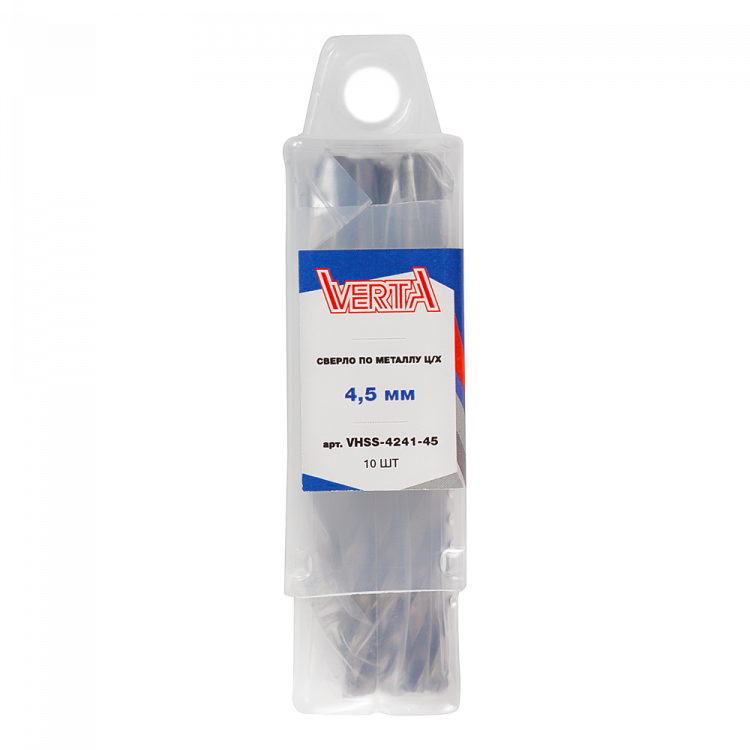 Сверло по металлу с цилиндрическим хвостовиком 4,5мм (10шт) VERTA