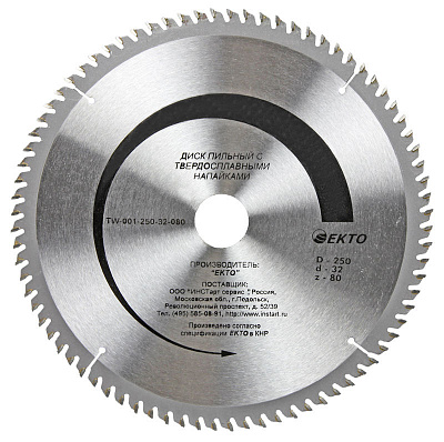 Диск пильный по алюминию 210х32/30х80Т отрицательный угол наклона RUNEX