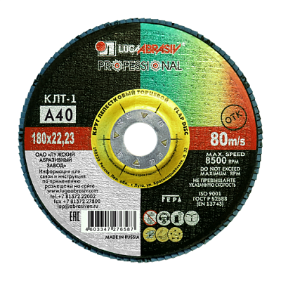 Круг лепестковый 115х22мм A/Р40 №40 КЛТ_1 прямой 13300об/мин 80м/с ЛУГА