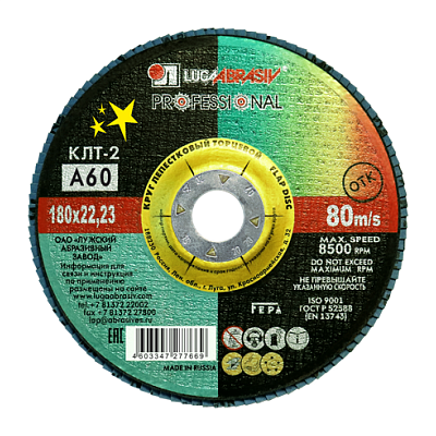 Круг лепестковый 180х22мм A/Р60 №25 КЛТ_1 прямой ЛУГА