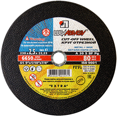 Круг отрезной 230х2,5х22мм А30 по металлу Extra ЛУГА