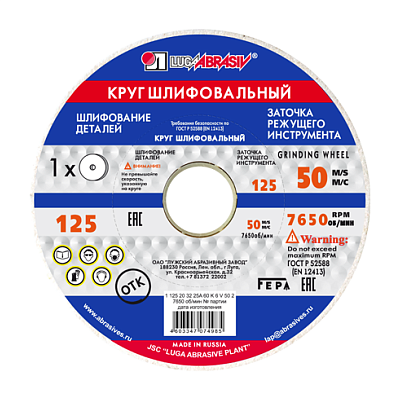 Круг шлифовальный 1 125х20х32мм 25А (белый) F60 К,L (среднемягкий) ЛУГА