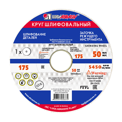 Круг шлифовальный 1 175х20х32мм 25А (белый) F60 К,L (среднемягкий) ЛУГА