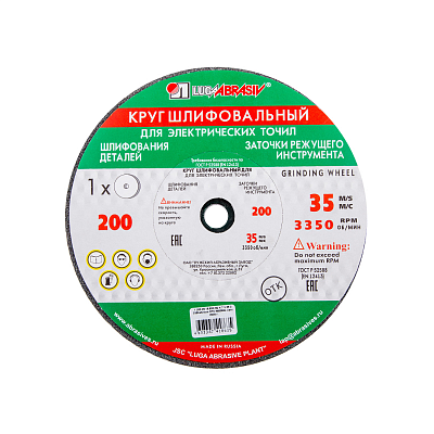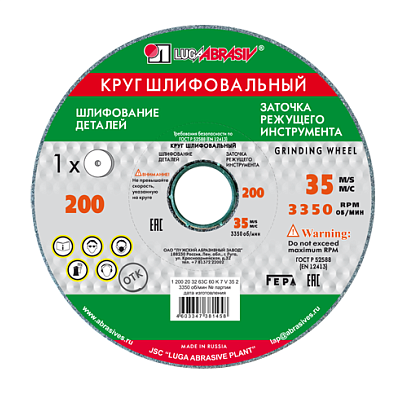 Круг шлифовальный 1 200х20х16мм 64С (зеленый) F60 K,L (среднемягкий) ЛУГА
