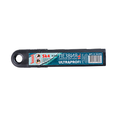 Лезвия 18мм отламывающиеся (10шт) черные толщина 0,7мм в пластиковой коробке ULTRAPROFI VERTA