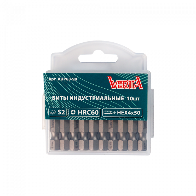 Биты HEX 4х50мм сталь S2 1/4" (10шт) ULTRAPROFI VERTA