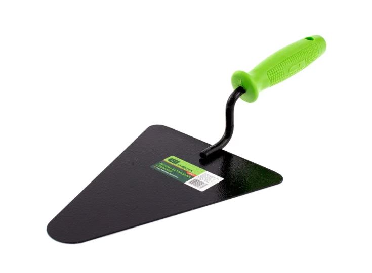 Стальная кельма бетонщика Сибртех 86213 с пластиковой ручкой используется для отмеривания материалов, перемешивания и нанесения строительных растворов, заполнения швов и удаления излишков при кладке кирпича, строительных блоков и т.д. За счет треугольного полотна с прямыми гранями и закругленными краями ею удобно подрезать и выравнивать раствор, в том числе и в труднодоступных местах.