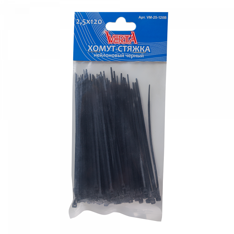 Хомут-стяжка 2,5х120мм нейлоновый черный VERTA