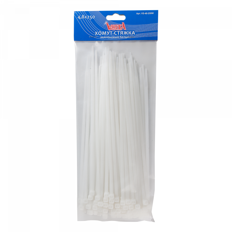 Хомут-стяжка 4,8х250мм нейлоновый белый VERTA