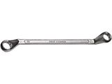 Накидные рабочие части ключа смещены относительно его рукоятки, что позволяет работать в труднодоступных местах.