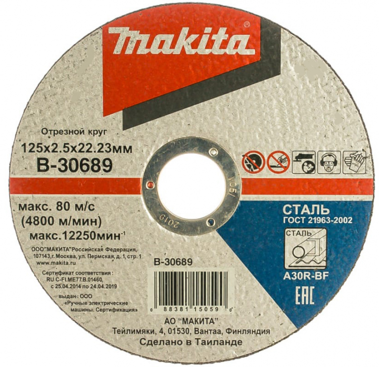 Круг отрезной 125х2,5х22мм по металлу MAKITA