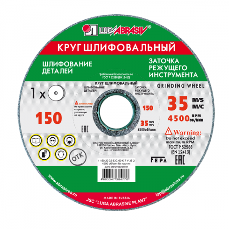 Круг шлифовальный 1 150х20х32мм 64С (зеленый) F60 К,L (среднемягкий) ЛУГА