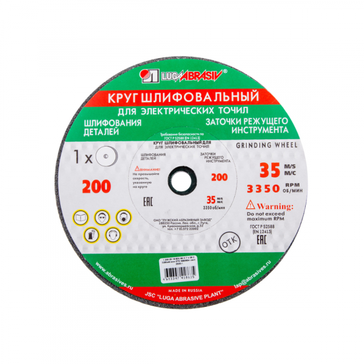 Круг шлифовальный 1 200х20х16мм 64С (зеленый) F60 K,L (среднемягкий) ЛУГА