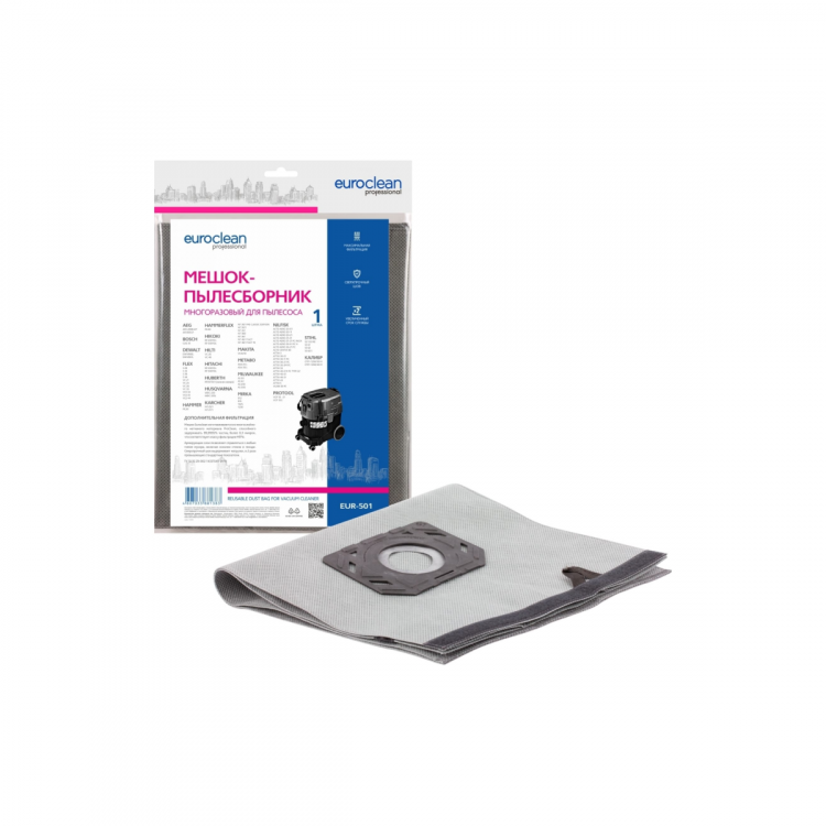 Мешки-пылесборники многоразовый с текстильной застежкой, 1шт EUR-501