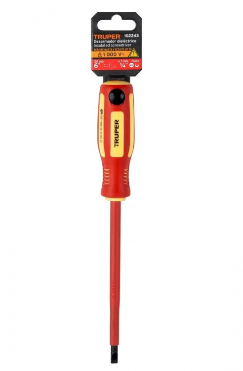 Отвертка SL6,5х150мм диэлектрическая с двухкомпонентной рукояткой DR-1/4x6D TRUPER