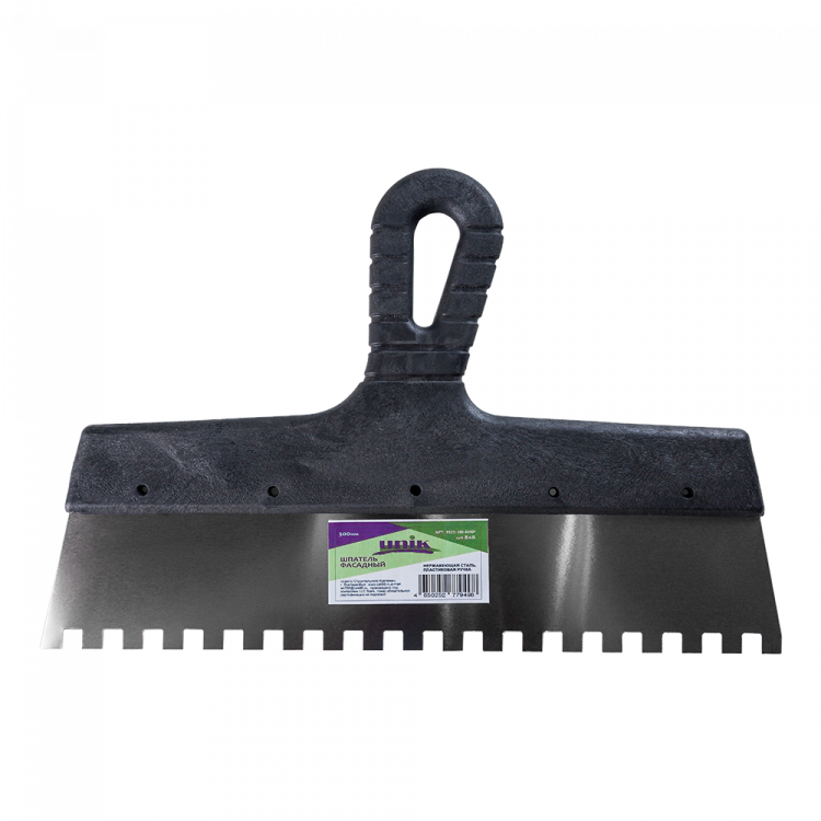 Шпатель 200мм фасадный нержавеющая сталь зуб 8х8мм пластиковая ручка UNIK