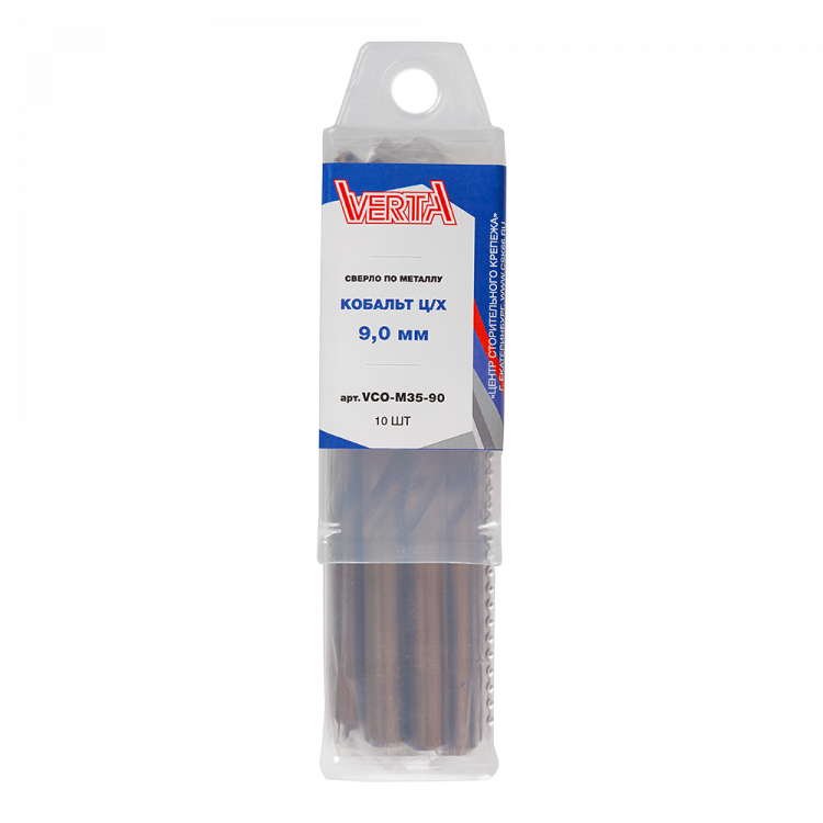 Сверло по металлу кобальт с цилиндрическим хвостовиком 9,0мм (10шт) VERTA