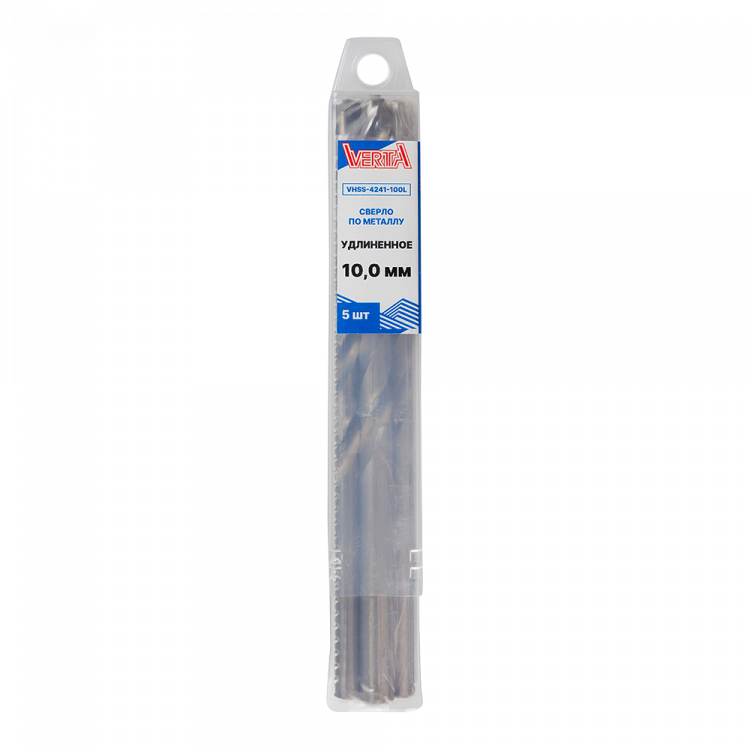 Сверло по металлу с цилиндрическим хвостовиком 10,0мм удлиненное (5шт) VERTA