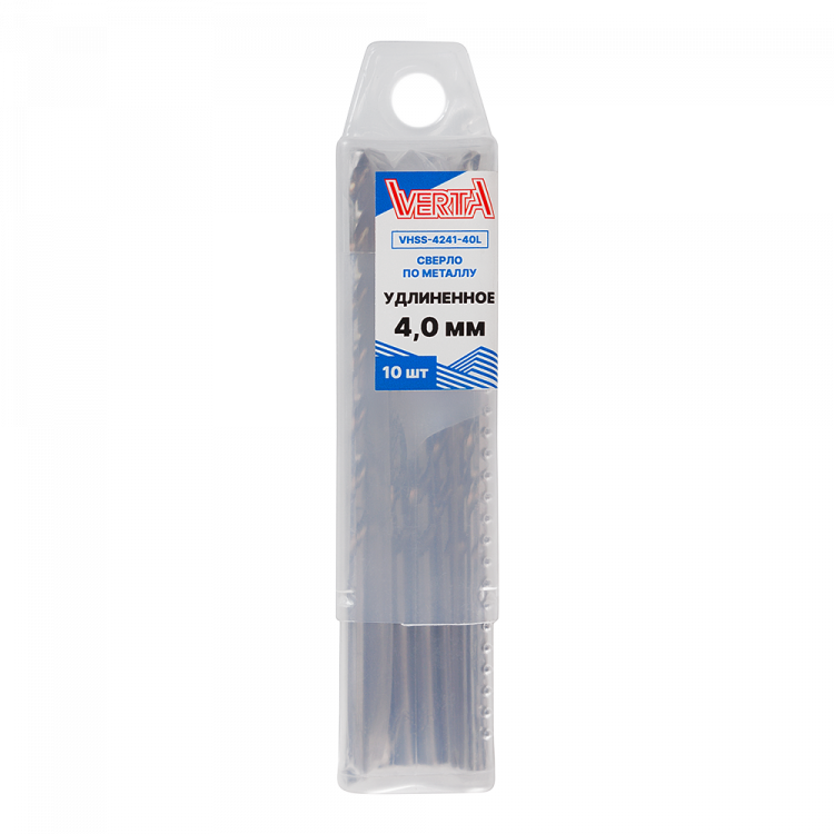 Сверло по металлу с цилиндрическим хвостовиком 4,0мм удлиненное (10шт) VERTA