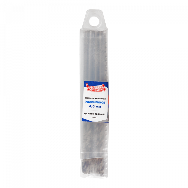 Сверло по металлу с цилиндрическим хвостовиком 4,5мм удлиненное (10шт) VERTA
